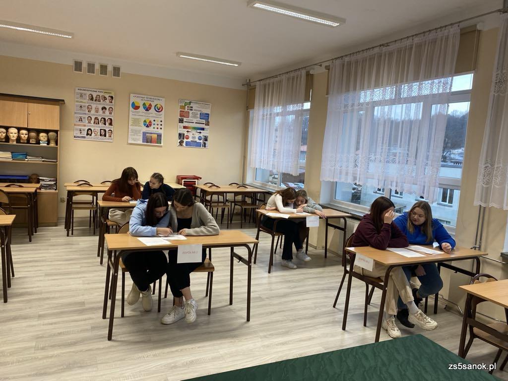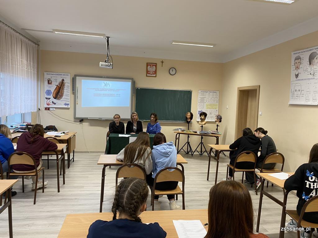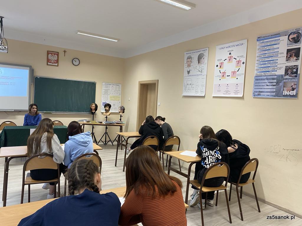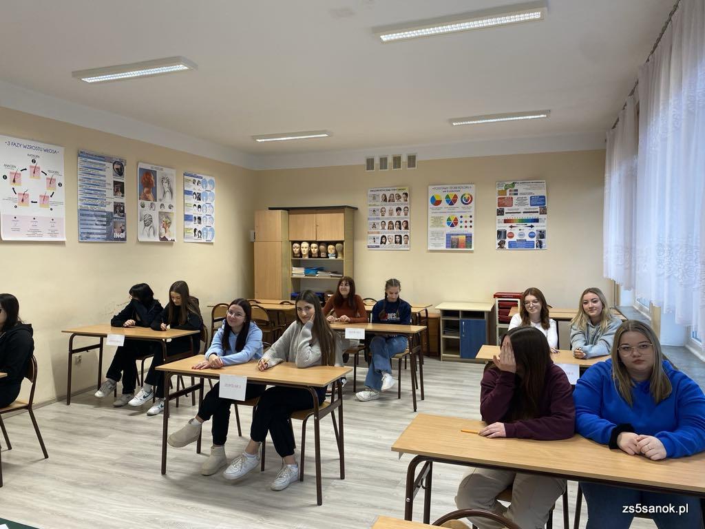 28 listopada br. odbyły się eliminacje pierwszego stopnia Ogólnopolskiej Olimpiady Wiedzy i Umiejętności Fryzjerskich, organizowanej przez Stowarzyszenie Rozwoju Sztuki Fryzjerskiej w Olsztynie. Brało w niej udział 6 zespołów składających się z uczniów kształcących się w zawodzie technik usług fryzjerskich. W etapie szkolnym uczestnicy olimpiady w ciągu 45 minut rozwiązywali test wielokrotnego wyboru o zróżnicowanym stopniu trudności. Zakres wiedzy i umiejętności z podstawy programowej, na bazie której opracowano test był bardzo szeroki i wymagał szczegółowej wiedzy.