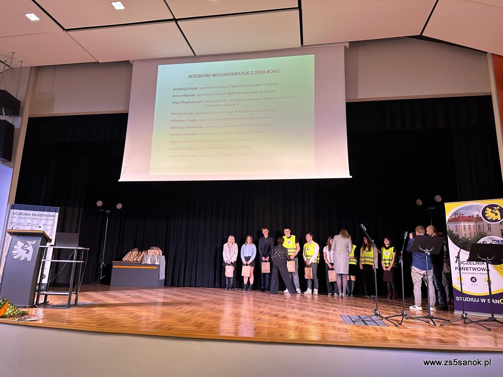 5 grudnia w Państwowej Uczleni w Sanoku odbyła coroczna Gala z okazji Międzynarodowego Dnia Wolontariusza. Uroczystość odbyła się w bardzo pięknym wydaniu, nie zabrakło wspomnienia o Pani Czesławie Kurasz, która była założycielką Powiatowego Centrum Wolontariatu w Sanoku. Po śmierci Pani Czesławy prezesem została Pani Irena Gil Storoszczuk, której bardzo dziękujemy za to, że Wolontariat w Powiecie Sanockim nadal istnieje. Podczas uroczystości wybrano honorowych wolontariuszy, złożono podziękowania Wszystkim opiekunom Szkolnych kół wolontariatu. W drugiej części gali została zaprezentowana krótka cześć artystyczna przez fantastycznych ludzi udzielających się charytatywnie. Pamietajmy nieśmy bezinteresownie dobro ono na pewno do Nas wróci…