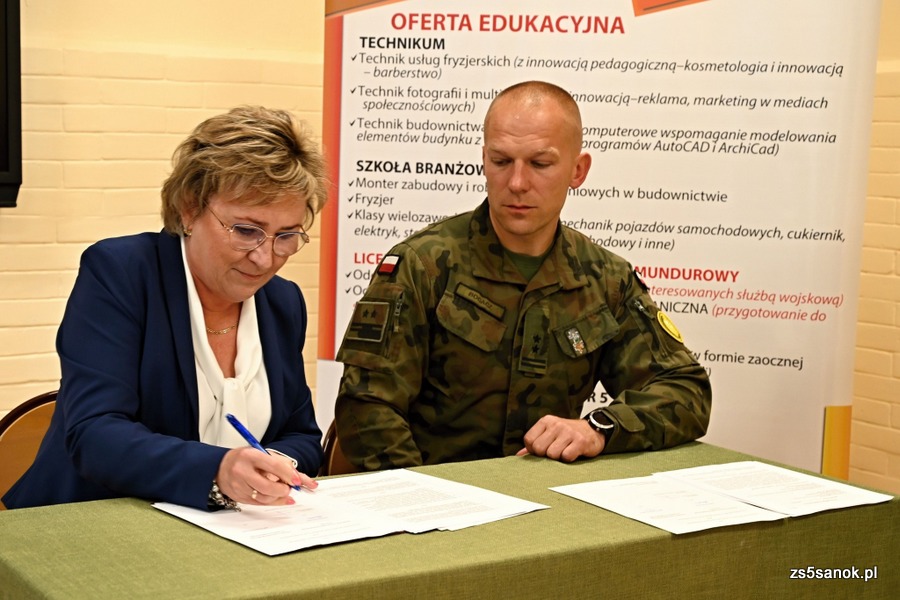 Dokument sygnowali: Elżbieta Kokoszka – Dyrektor ZS5 oraz ppłk Krzysztof Bogacz – Dowódca 21. Batalionu Logistycznego.