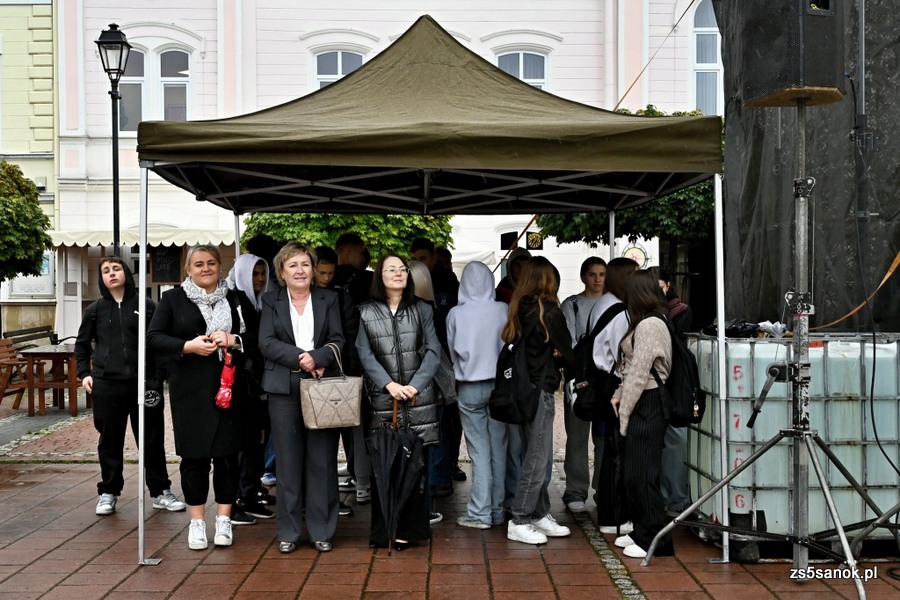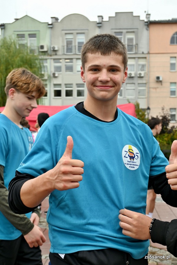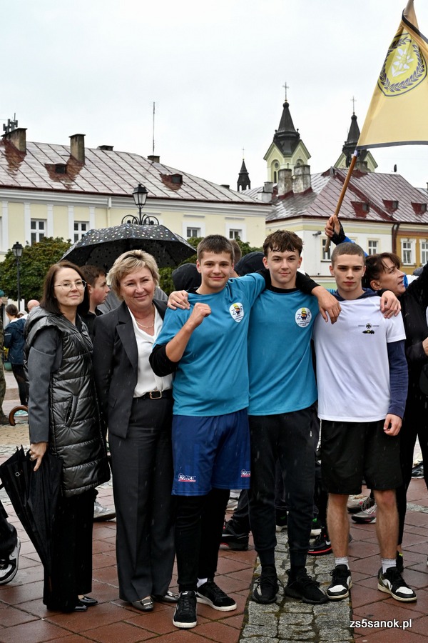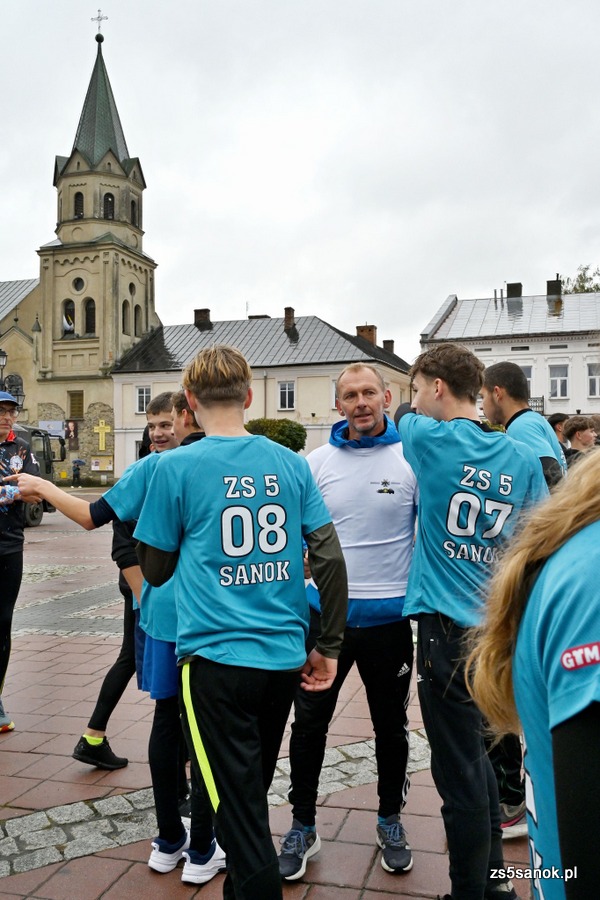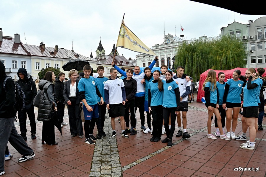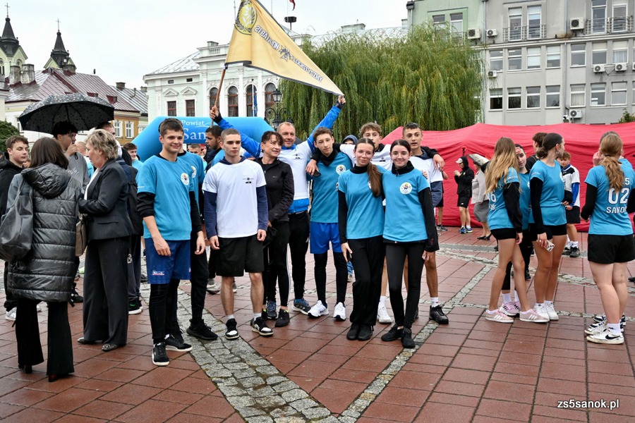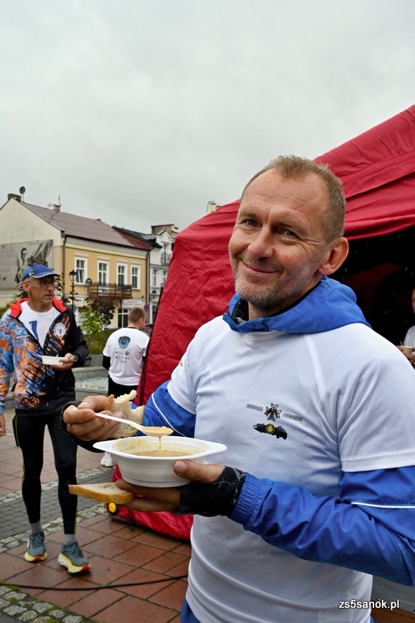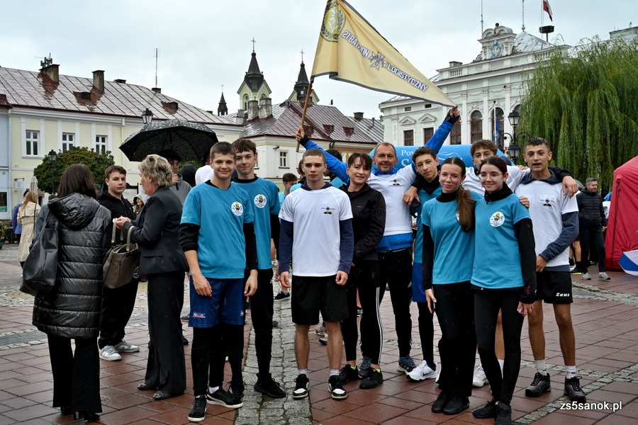 2025-09-24 odbył się bieg sztafetowy z Bochni do Sanoka „Razem, w duchu tradycji i pamięci” z okazji 105. rocznicy przybycia Podhalańczyków do Sanoka. W biegu uczestniczyli uczniowie naszej szkoły pod opieką pani Ewy Bocoń i pana Daniela Niemczyka. Na sanockim rynku przywitała ich dyrektor naszej szkoły pani Elżbieta Kokoszka, wicedyrektor pani Katarzyna Michalak oraz grupa naszej młodzieży pod opieką pani Agnieszki Jakobik. W namiocie strażaków na uczestników biegu czekały ciepłe napoje i posiłek, który był bardzo wyczekiwany, bo pogoda się nie popisała ![]()