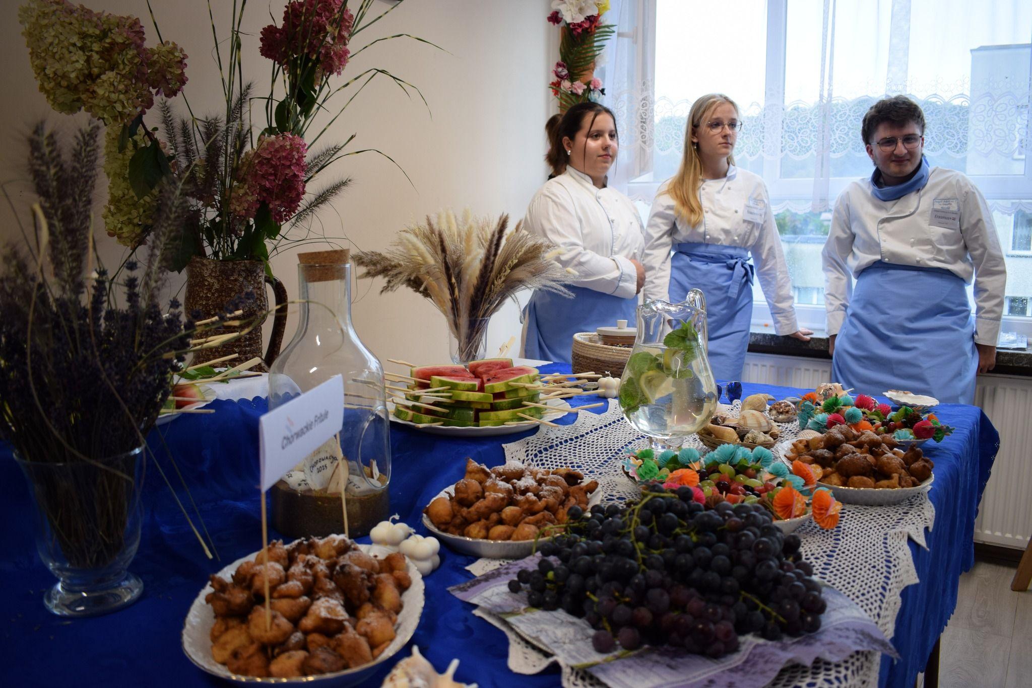 technika żywienia i usług gastronomicznych – przygotowywanie dań kuchni regionalnej kraju stażu,– podczas pokazu nastąpiła praktyczna demonstracja umiejętności zawodowych - stażyści przygotowali chorwackie fritule.