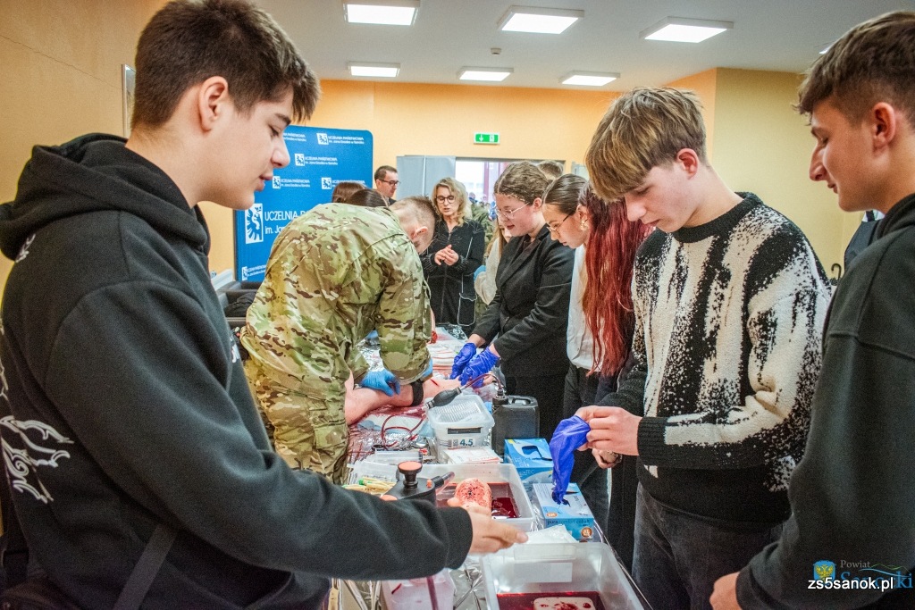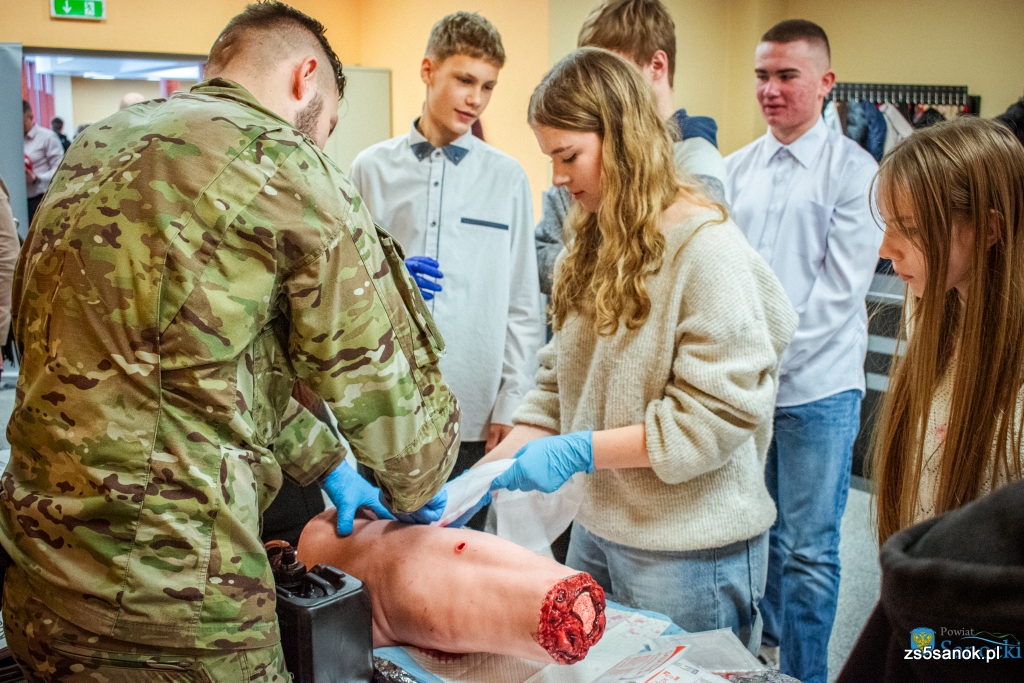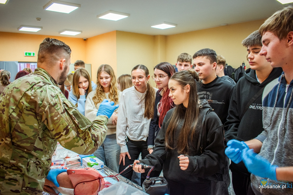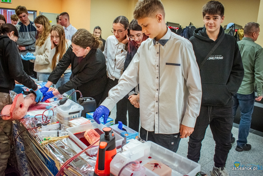 Uczniowie klas mundurowej i wojskowej Zespołu Szkół nr 5 w Sanoku aktywnie uczestniczyli w warsztatach z pierwszej pomocy i ratownictwa, zdobywając praktyczne doświadczenie w reagowaniu kryzysowym.