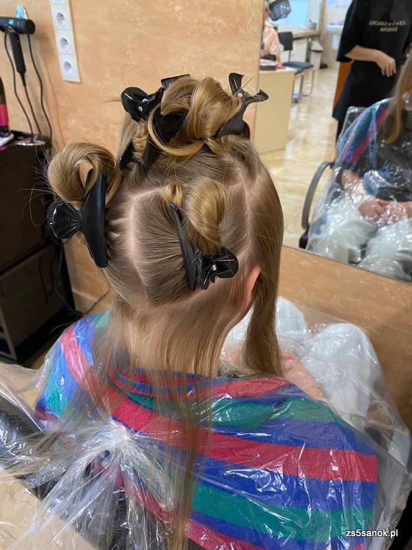 Wszystkie zajęcia i zabiegi odbywają się pod opieką nauczycieli zawodu Technik Usług Fryzjerskich.