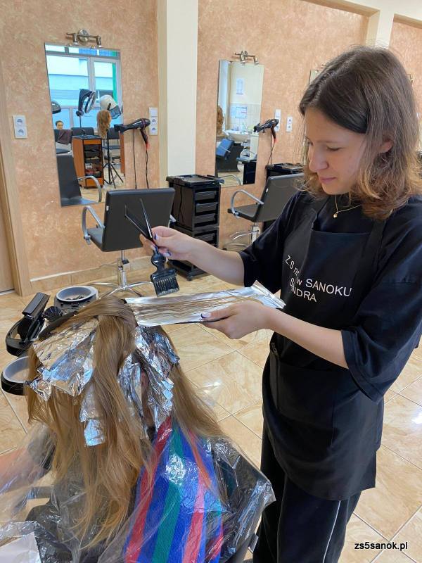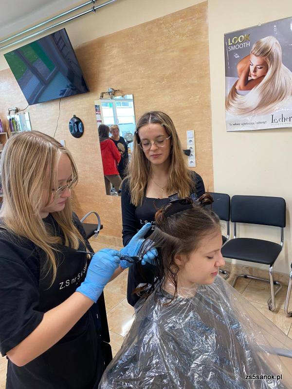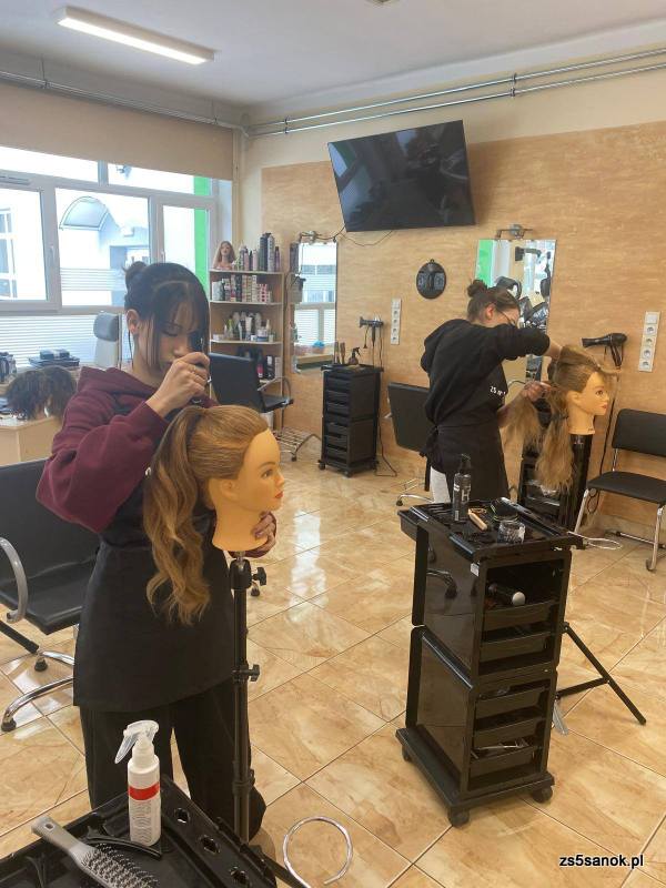 W pracowni fryzjerskiej Zespół Szkół nr 5 w Sanoku doskonalimy umiejętności podczas zajęć z Procesów fryzjerskich i stylizacji fryzur.
