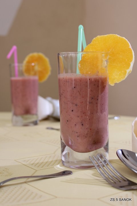 Efektem tak prowadzonych zajęć są przygotowane przez uczniów np. twarożki lub koktajle owocowo - mleczne prezentowane na poniższych fotografiach.