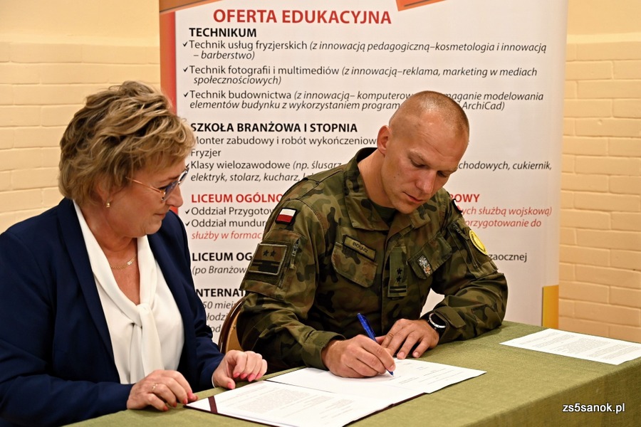 Dokument sygnowali: Elżbieta Kokoszka – Dyrektor ZS5 oraz ppłk Krzysztof Bogacz – Dowódca 21. Batalionu Logistycznego.