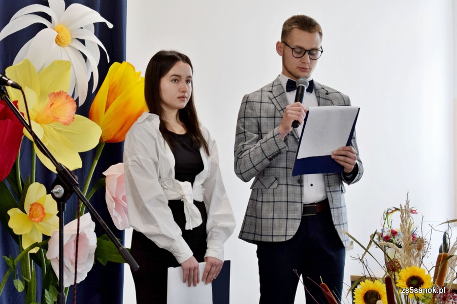 Podczas akademii reprezentując młodzież szkolną wyrazili swoją wdzięczność za codzienny trud i serce pedagogów uczniowie z klas starszych i młodszych.