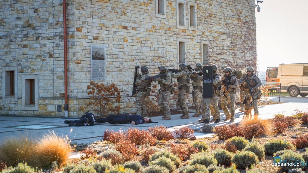 Operacja „ALERT MCI SANOK – 2025. OPERACJA BEKSIŃSKI” - ćwiczenia obejmowały działania terrorystyczno-dywersyjne z elementami CBRNE na Zamku Królewskim. Zaangażowane służby, których współpracę mogli obserwować nasi uczniowie to: Policja, CBŚP, Żandarmeria Wojskowa, PSP, OSP, SGR Chemiczna Leżajsk, JWK Lubliniec (K9 i zespół medyczny), Bieszczadzkie Pogotowie Ratunkowe SP ZOZ w Sanoku, Dyspozytornia Medyczna, Muzeum Historyczne W Sanoku oraz zespoły pozoracji.