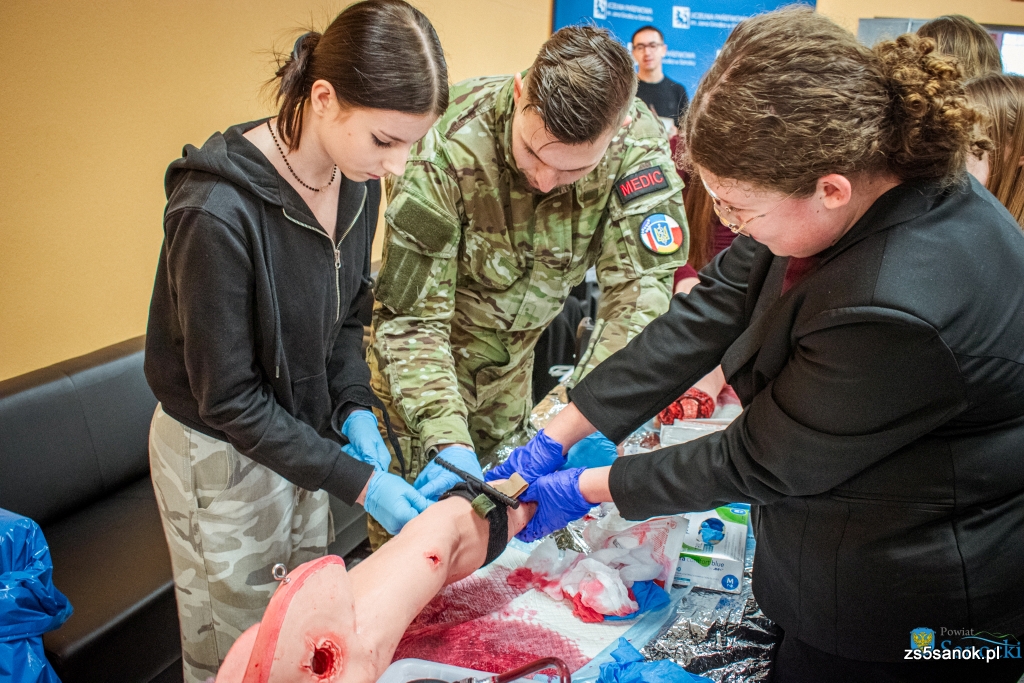 Uczniowie klas mundurowej i wojskowej Zespołu Szkół nr 5 w Sanoku aktywnie uczestniczyli w warsztatach z pierwszej pomocy i ratownictwa, zdobywając praktyczne doświadczenie w reagowaniu kryzysowym.