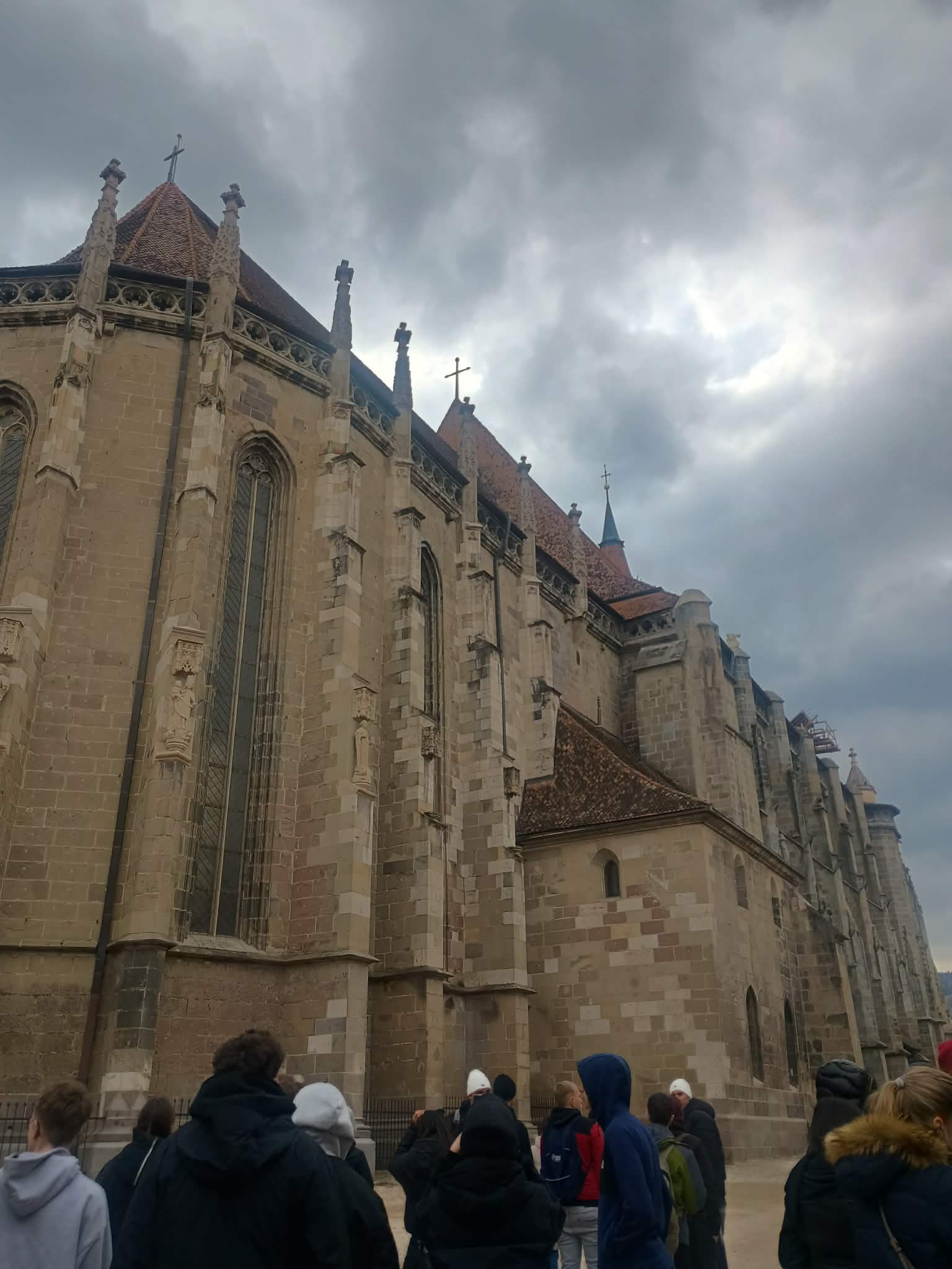 W sobotę odwiedziliśmy Zamek Bran, który uchodzi za siedzibę legendarnego wampira Drakula. Tajemnicza atmosfera miejsca, jego średniowieczna architektura oraz bogata historia zrobiły na wszystkich ogromne wrażenie. Następnie udaliśmy się do Braszowa – jednego z najpiękniejszych miast w Rumunii. Zwiedziliśmy rozległe Stare Miasto, reprezentujące różne style architektoniczne, z ratuszem, którego początki sięgają XV wieku. Zobaczyliśmy również późnośredniowieczny Czarny Kościół w stylu gotyckim (XIV–XV w.) oraz Czarną i Białą Wieżę. Część grupy wyjechała kolejką linową na wzgórze Góra Tâmpa, skąd rozpościera się przepiękny widok na miasto.